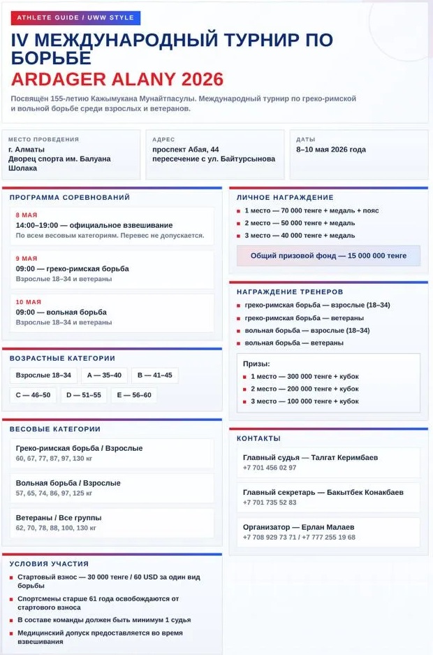 Международный турнир “Ardager Alany” по спортивной борьбе среди среди взрослых и ветеранов, посвященный 155-летию со дня рождения Кажымукана Мунайтпасулы